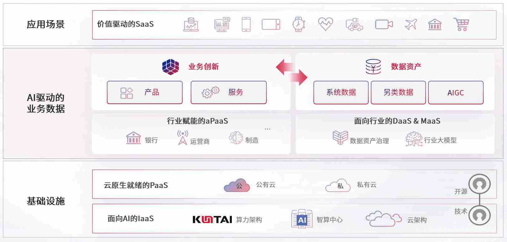 数字时代,,,,围绕企业数字化转型的关键要素,,,,z6com尊龙数码开创性的提出数云融合战略和技术体系框架,,着力在云原生、、、数字原生、、、AI原生和信创产业上架构产品和服务能力,,为处在不同数字化转型阶段的快消零售、、、汽车、、、、金融、、、医疗、、、政企、、、、教育、、、运营商等行业客户提供泛在的敏捷IT能力和融合的数据驱动能力,,构建跨界融合创新的数字业务场景和新业务模式,,助力企业级客户建立面向未来的核心能力和竞争优势,,,,全面推动社会的数字化、、、、智能化转型升级。。。。